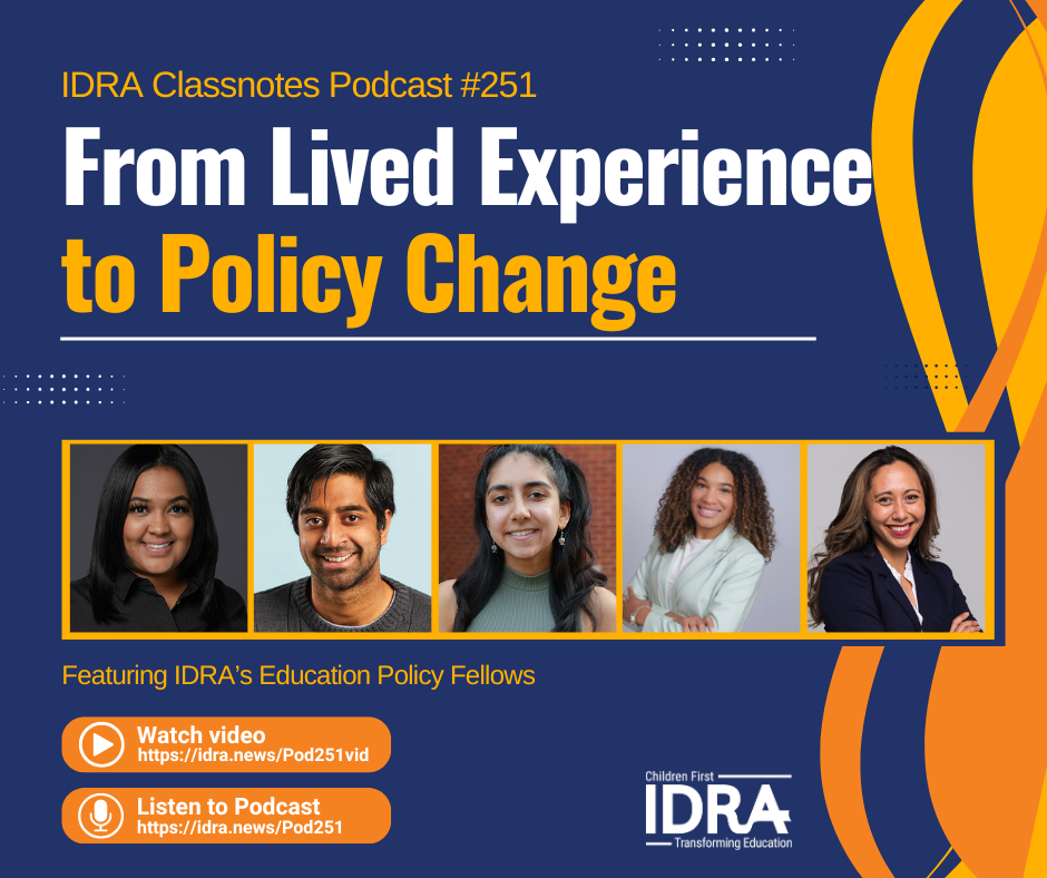 In this new IDRA Classnotes Podcast episode, IDRA Education Policy Fellows share why they applied, what they learned, and how the fellowship helped them turn lived experience into policy impact.