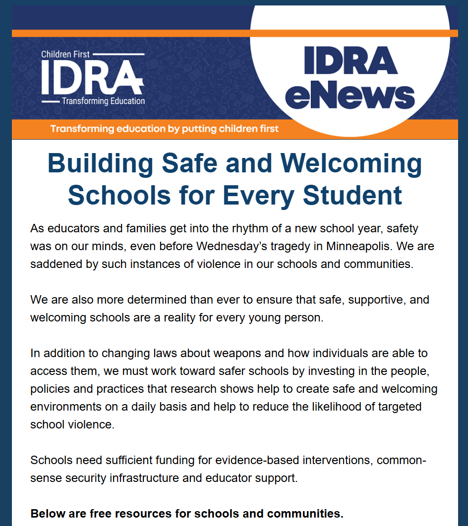 As educators and families get into the rhythm of a new school year, safety was on our minds, even before Wednesday’s tragedy in Minneapolis. We are saddened by such instances of violence in our schools and communities. We are also more determined than ever to ensure that safe, supportive, and welcoming schools are a reality for every young person. See free resources for schools and communities.